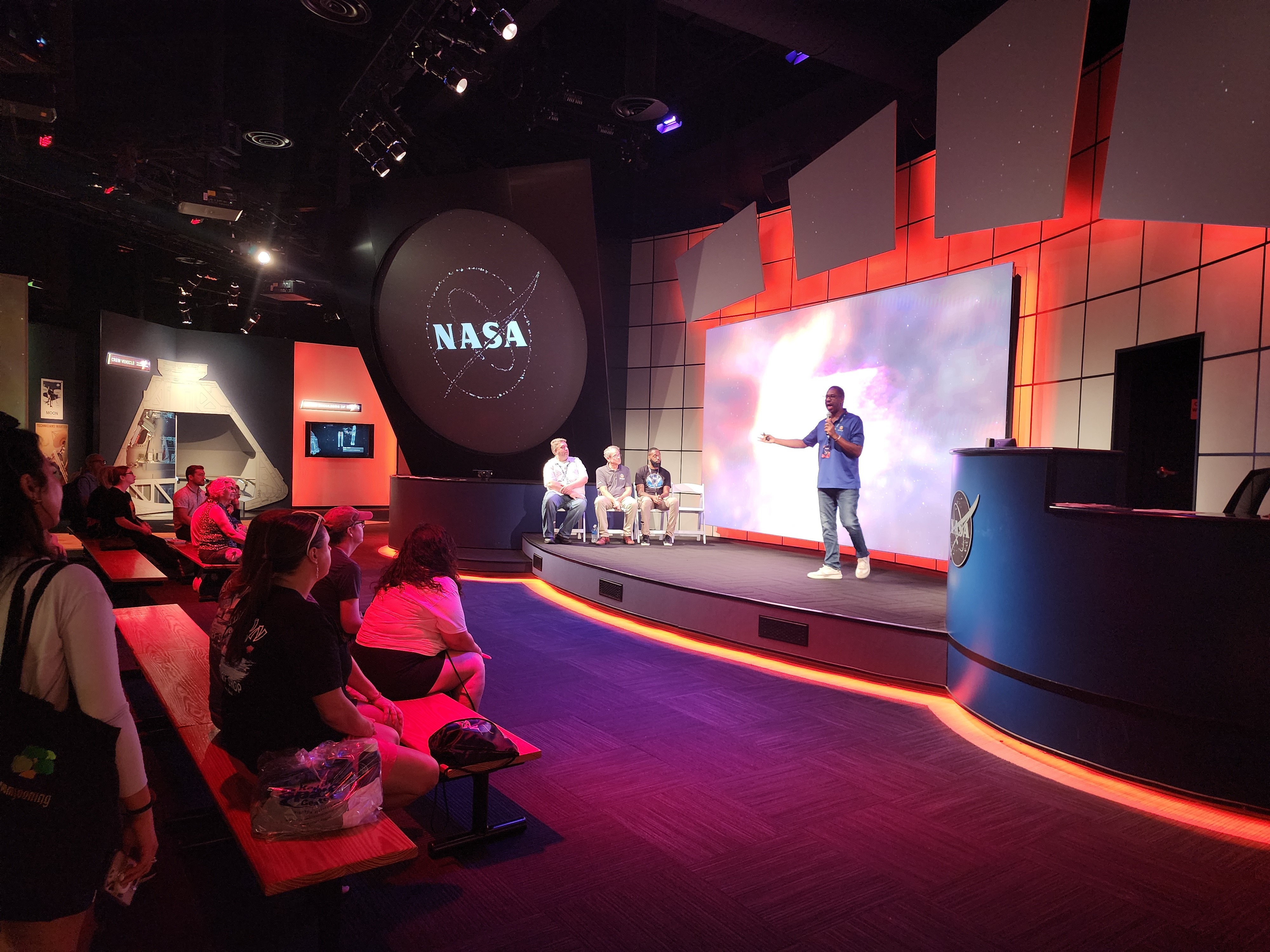 During our time in the Atlantis building, IMAP experts were taking the stage daily to talk about their areas of expertise — from spacecraft design to the science that will soon flow from IMAP’s instruments. Twice a day, the three-mission briefing (IMAP, Carruthers, and SWFO-L1) brought it all together for the public. These sessions were packed with thoughtful questions and genuine enthusiasm from visitors who wanted to know everything about what was heading to space with IMAP's launch.