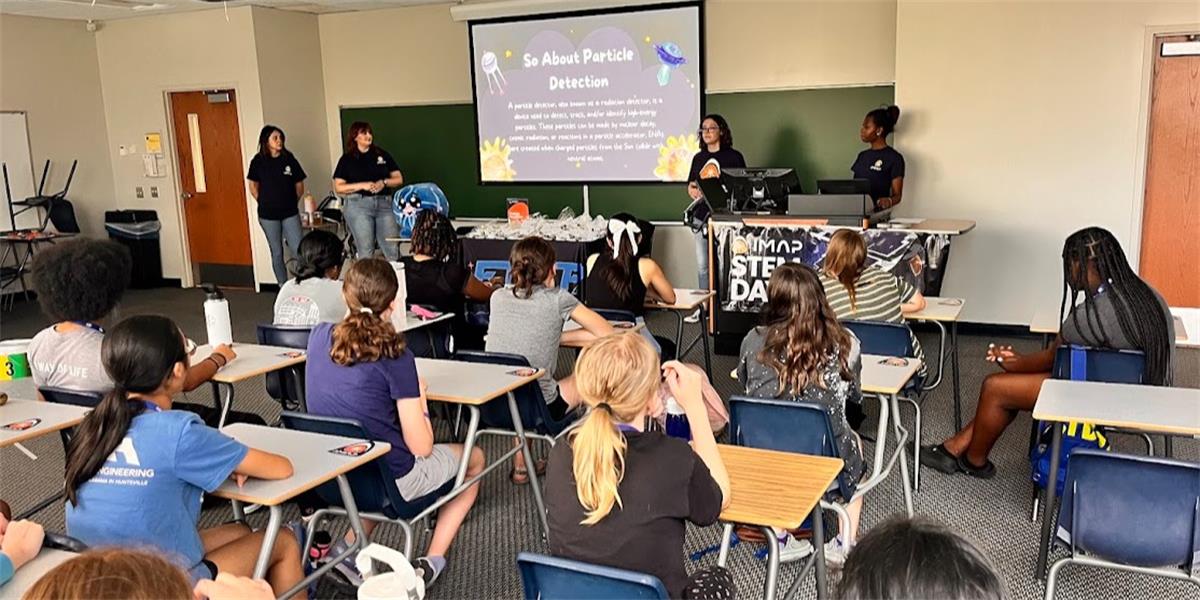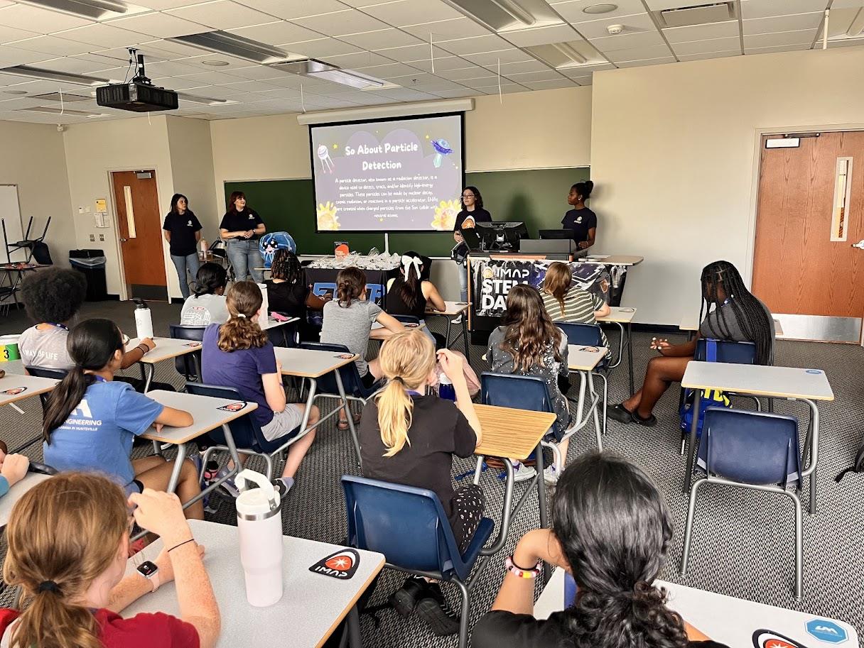 FTPP had the privilege of facilitating a workshop for Tech Trek, engaging 64 seventh-grade girls from Alabama. The workshop featured a Canva presentation titled 'An Out Of This World Presentation' on Particle Detection, complemented by an interactive activity. The students displayed great enthusiasm and participation throughout the session. To conclude, we orchestrated a simulated graduation ceremony, presenting each student with a goody bag containing an IMAP sticker, a pencil, a highlighter, and a personalized mini certificate as 'An Out Of This World Attendee'. The Particle Detection activity received exceptional feedback, scoring a perfect 10/10.