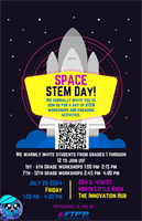 We are excited to announce our Space STEM Day event on Friday, July 26, at The Innovation Hub in Little Rock, Arkansas. This event is designed to inspire and educate students from 1st to 12th grade with engaging, hands-on activities in space science. We would appreciate your help in spreading the word about this event.